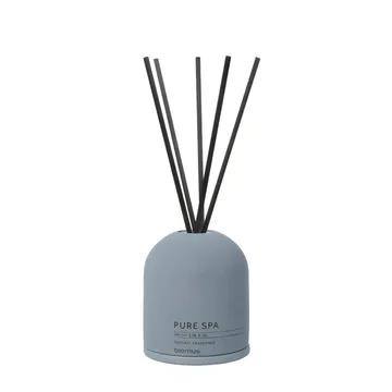 Fraga duftpinner 100 ml fra Blomus er et sett med duftolje, fem stråpinner samt en glassflaske dekket av betong. Det sylinderformede og avrundede designet gjør at duftpinnene samles i den lille åpningen, noe som skaper en fin effekt når de fordeler seg. Beholderen kan brukes flere ganger. Settet med duftpinner finnes i flere luksuriøse dufter der hver duft har sin egen, unike farge på beholderen.