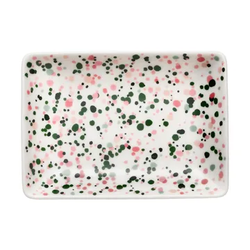 Oiva Toikka Helle A6 tallerken 10 x 15 cm fra finske Ittala er laget av vitroporselen. Det er en livlig tallerken med et fargerikt mønster, designet av Oiva Toikka. Tallerkenen passer perfekt å bruke til tapas, snacks eller dessert. Oiva Toikka Helle A6 tallerken er en del av en tallerkenserie i forskjellige størrelser som kan kombineres for en fargerik og nydelig oppdekking.