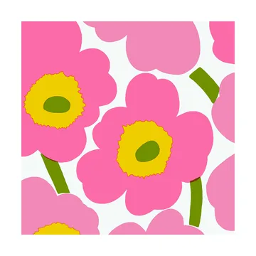 Papirserviett med Marimekkos ikoniske Unikko-mønster. Unikko betyr valmue på finsk, noe som er nøyaktig det det abstrakte blomstermønsteret på servietten forestiller. Maija Isola tegnet mønsteret i 1964, som en protest mot Marimekkos grunnlegger, Armi Ratia, sin uttalelse om at Marimekko aldri skulle produsere noe med blomstermønster. Unikko har derfor kommet til å symbolisere styrke, mot og at man alltid skal tro på seg selv.
